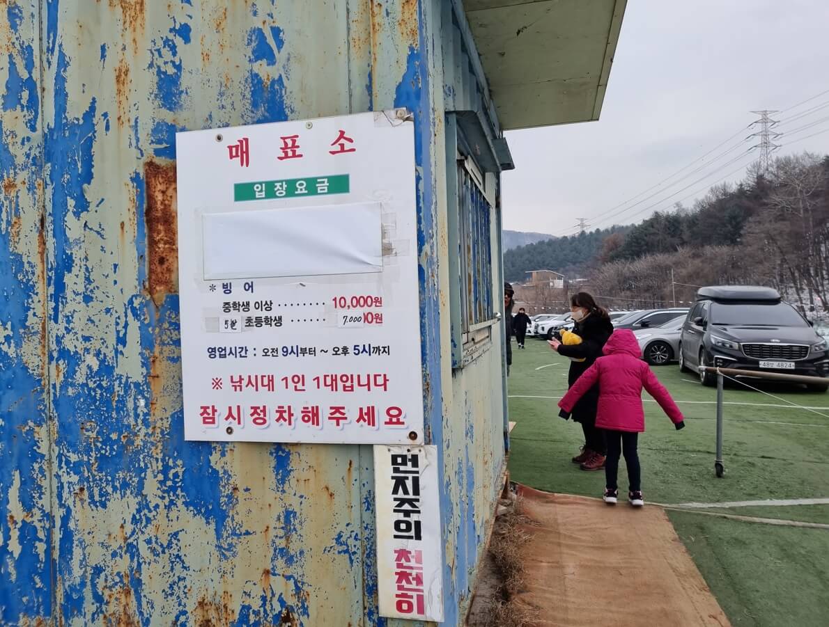 낚시터에 도착해서 입장료를 지불하면 입장이 가능합니다. 입장료는 성인 10,000원, 5세 이상부터 초등학생까지는 7,000원입니다.